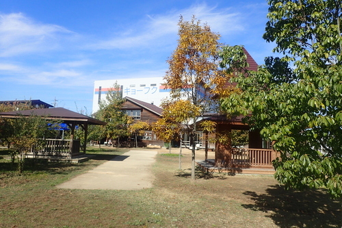 今年の秋の園庭から園舎を望む風景、10年の重みを感じます