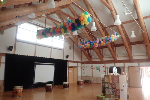 開園以降、お祝いの場ではよくくす玉わりをしてきました。今回は4個準備しました。